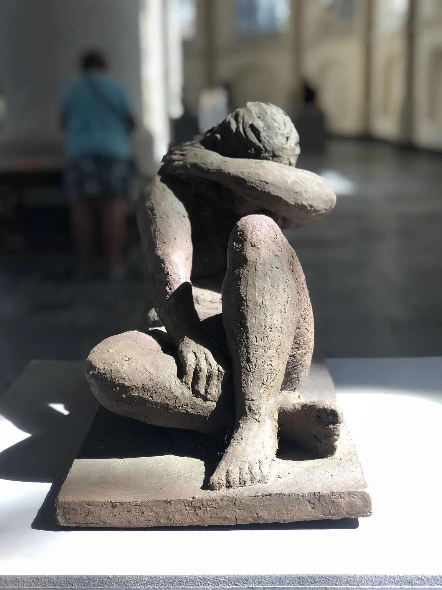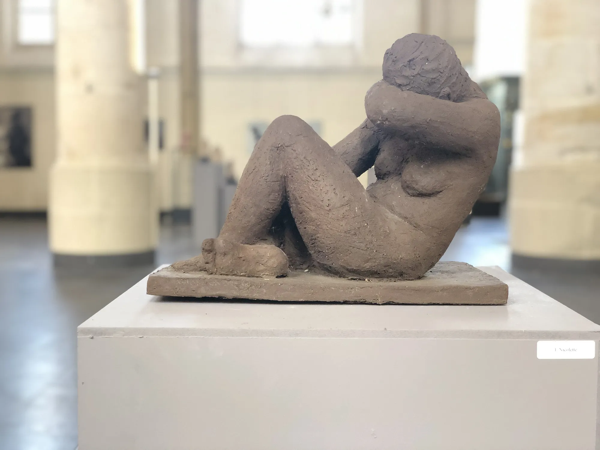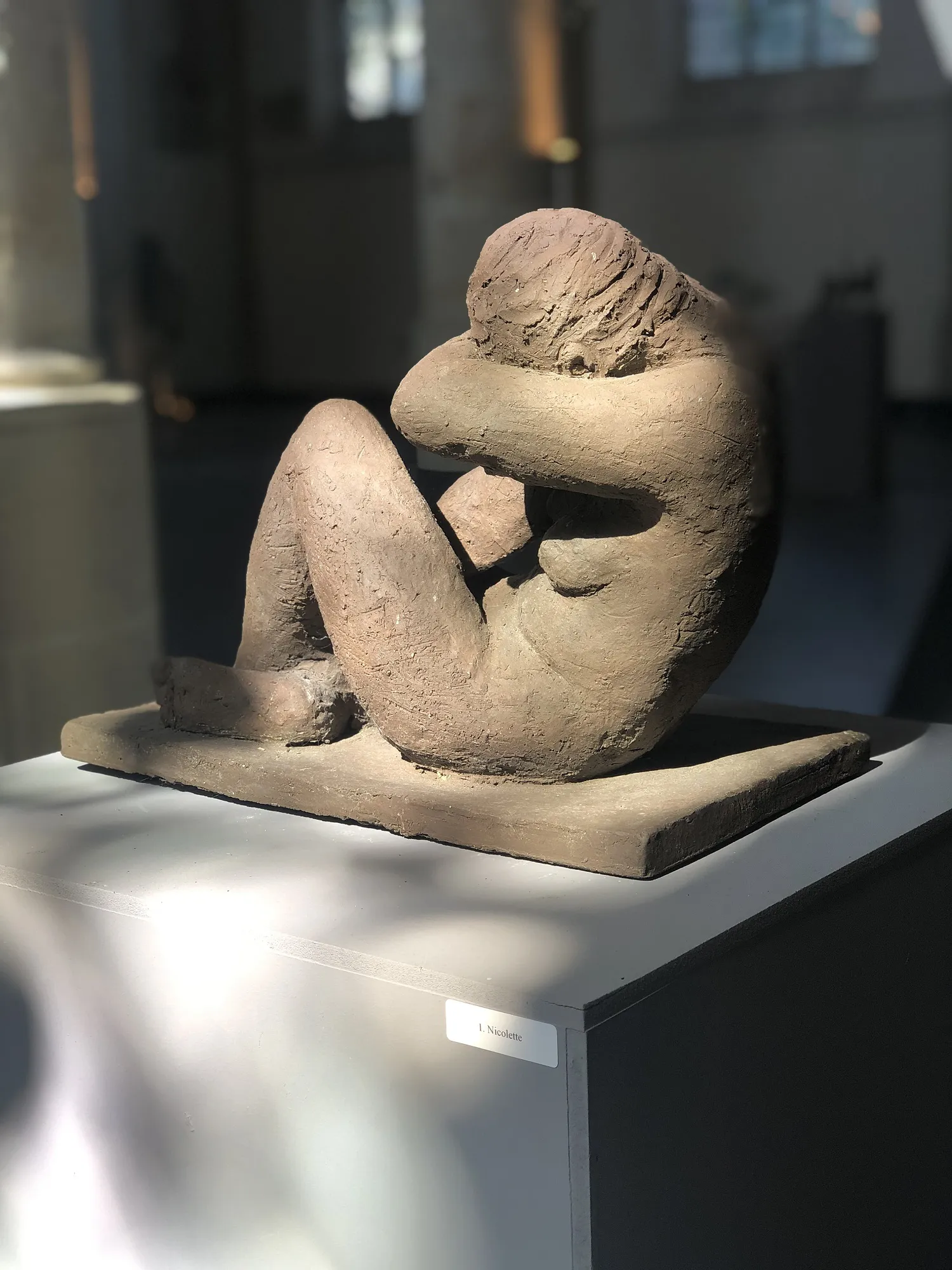 Droef - Nicolette Dresselhuijs - Dit beeld is 50 cm lang en 25 cm hoog. Gemaakt van bruinbakkende klei.